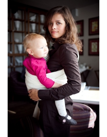 Это натуральный неокрашенный шарф белоснежного цвета, что делает его особенно нарядным, и в то же время нейтральным. Didymos индио с коноплей славятся своей великолепной поддержкой, которая позволяет с комфортом носить даже подрощенных тяжелых детей.