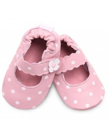 Балетки для девочек, с мягкой подошвой "Pink / Dots / Flower Розовые с точками и цветочком"