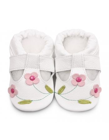 Балетки для девочек, с мягкой подошвой "White / Pink Flowers Белые с розовыми цветочками"