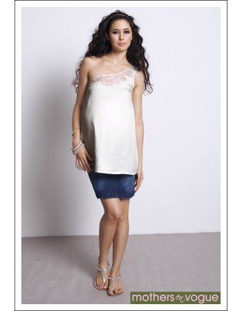 Топ выполнен из мягкой, воздушной хлопковой ткани (не трикотаж!), горловина топа украшена вышивкой и прозрачными блестками. Топ имеет двойной слой, для кормления верхний слой ткани открывается снизу, внутренний слой имеет прорези для груди по бокам. Конструкция топа позволяет носить его и во время беременности, и после родов.