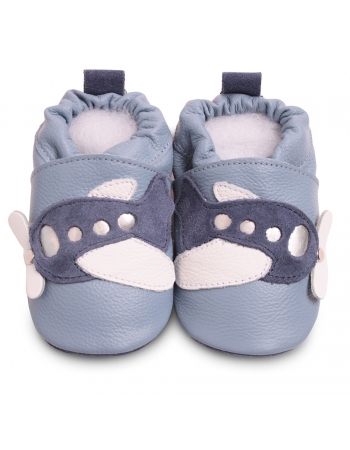 Ботиночки для мальчиков, с мягкой подошвой "Baby Blue / Airplane Светло-голубые с самолетиком"