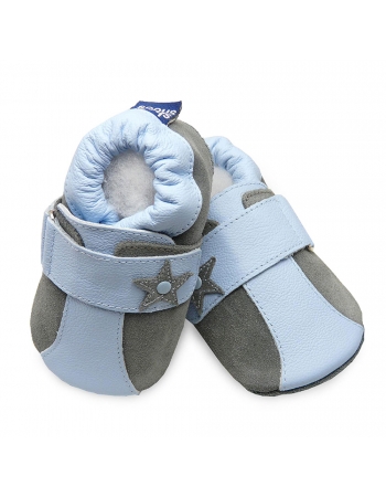 Ботиночки для мальчиков, с мягкой подошвой "Sky / Gray / Star Серо-голубые со звездами"