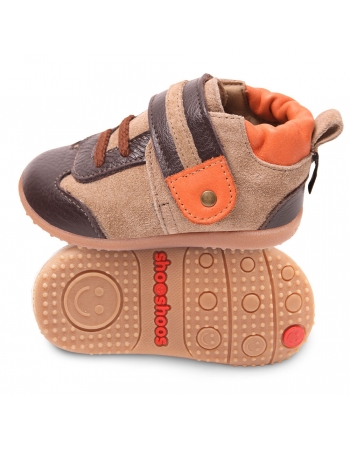 Ботиночки с твердой подошвой, "Sand / Brown / Orange Sport Коричнево-песочные в стиле спорт с ремешком"