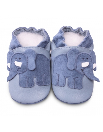 Ботиночки со зверятами, с мягкой подошвой "Blue Elephant Голубые со слоником"