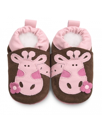 Ботиночки со зверятами, с мягкой подошвой "Brown / Pink Giraffe Коричневые с розовыми жирафами"