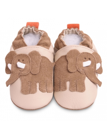 Ботиночки со зверятами, с мягкой подошвой "Cream / Brown Ellie Кремовые с коричневым слоником"