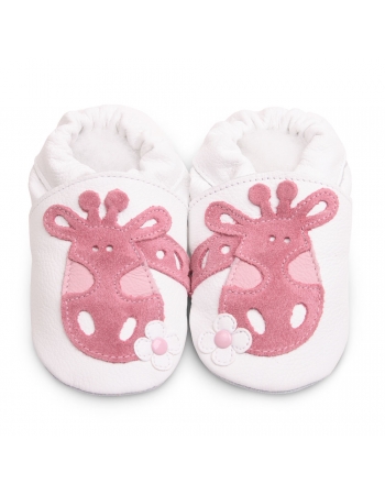 Ботиночки со зверятами, с мягкой подошвой "White / Pink Giraffe Белые с розовыми жирафами"