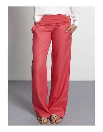 Брюки, выполненные из легкой льняной ткани, имеют широкий трикотажный пояс, поэтому они отлично подходят для ношения как во время беременности, так и после родов. Пояс можно носить сложенным вдвое либо расправлять по животу.