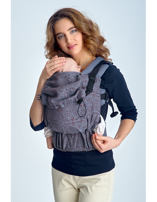Модель Simple имеет плечевые лямки и пояс из обычной хлопковой ткани. Спинка и капюшон с обеих сторон - из шарфовой, более мягкой и рыхлой ткани, поэтому сохраняются все преимущества шарфового рюкзака, но упрощенные лямки и пояс позволяют снизить стоимость переноски.