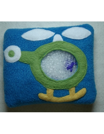 Cделана из мягкого флиса. Наполнитель - полиэтиленовый гранулят высокого давления, разрешенный к применению в пищевой промышленности и детских игрушках, и мелкие игрушки из пластика или металла.