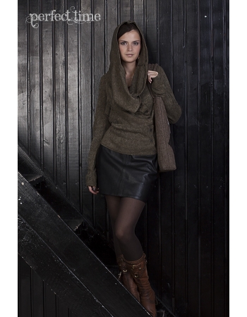 Кофта трансформер, может одеваться "головой" вниз", и тогда капюшон превращается в удлиненный ассиметричный подол, помогая скрывать округлость живота или застегиваться поверх ребенка.