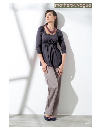 Топ выполнен из экологичного, нежного бамбукового трикотажа. Верхняя часть блузы имеет двойной слой, с прорезями для доступа к груди, спрятанными во внутреннем слое. Для кормления верхний слой топа поднимается снизу. Топ подходит как для беременных, так и для кормящих.