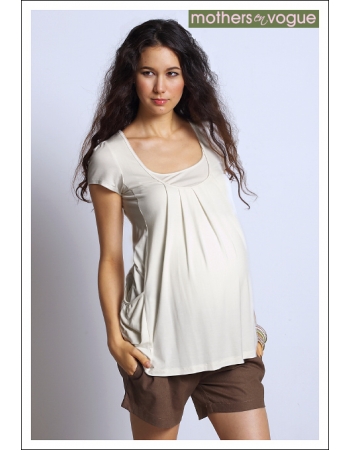 Материал топа - мягкий, экологичный бамбук. Для кормления отодвигается внешний слой двойного топа. Свободный крой предполагает возможность носить топ и во время беременности.