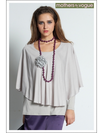 Топ с кормительным секретом в виде двойного топа выполнен из нежного трикотажа. Верхняя часть блузы имеет двойной слой, с прорезями для доступа к груди, спрятанными во внутреннем слое. Кроме того, украшением топа является накидка из 100% хлопка, которую можно использовать и как накидку для кормления, и как шарфик. Топ подходит как для беременных, так и для кормящих. Цветок не входит в комплект.