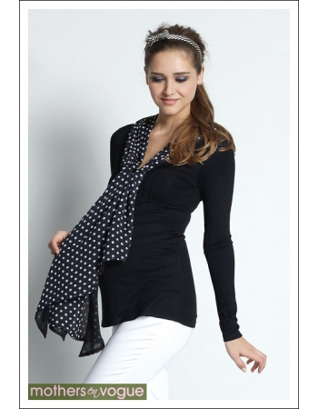 Топ с кормительным секретом в виде горловины-конверта и внутреннего ложного топа выполнен из нежного трикотажа. Украшением топа является легкий шарф, который можно использовать и как накидку для кормления, и как шарфик. Топ подходит и для беременных, и для кормящих.