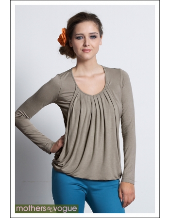 Топ для кормления Mothers en Vogue "Slouchy Pleated LS", цвет оливково-серый