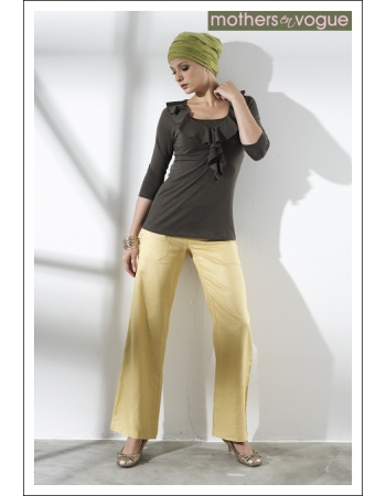 Топ выполнен из экологичного, нежного бамбукового трикотажа. Корсаж украшен рюшами, которые скрывают внутренний слой горловины.