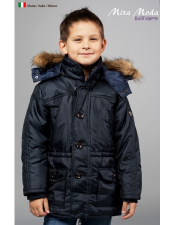 Куртка для мальчика с отстегивающимся капюшоном, на капюшоне эко-мех, на поясе скрытый стяжной шнурок.