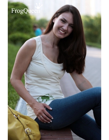 Принт в виде стилизованного изображения лягушки выполнен красками на водной основе методом шелкографии.