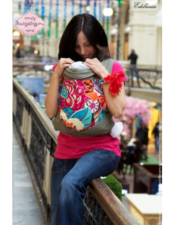 - Спинка май-слинга Edelweiss™ уплотнена натуральным (100% хлопок) дублирующим материалом, что, с одной стороны, позволяет улучшить фиксацию ребенка в слинге, а, с другой, слинг остается "дышащим".