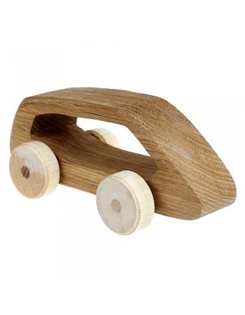 Уютная маленькая машинка из дуба для домашнего автопарка. Средний размер машинки идеально подходит для детской ладони.