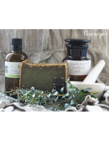 Замечательное мыло с уникальным комплексом масел, трав и отваров обладающее мощным антибактериальным и антисептическим действием. Главным действующим компонентом в этом мыле является нерафинированное масло дерева Ним.