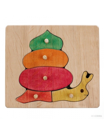 Пазл Улитка один из самых простых и базовых. Можно сказать, что это простейшая пирамида на плоскости. Сами по себе части пазла достаточно крупные, приятные на ощупь, удобные для манипуляций. Совсем крохи с удовольствием разбирают эти пазлы, им нравится просто тянуть за штырек, а потом пытаться вставить кусочек пазла обратно в рамку.