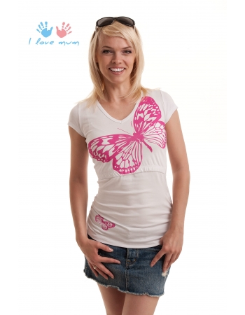 Футболка для беременных и кормящих "Грация" белая с бабочкой