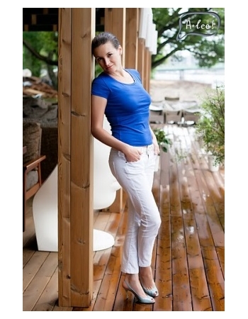 Футболка красиво и плотно облегает грудь и слегка приталена.