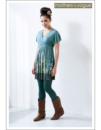 Платье выполнено из мягкой, струящейся ткани цвета светлого оттенка морской волны c аппликацией, выполненной из хлопка и модала с небольшим добавлением спандекса для лучшего облегания. Конструкция платья позволяет носить его и во время беременности, и после родов, мягко принимая форму меняющейся фигуры.