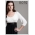Платье выполнено из высококачественного трикотажа с небольшим добавлением спандекса для лучшего облегания фигуры. Верхняя часть блузы имеет двойной слой, с прорезями для доступа к груди, спрятанными во внутреннем слое. Для кормления верхний слой топа поднимается снизу. Пояс выполнен в виде сатиновой черной ленты.