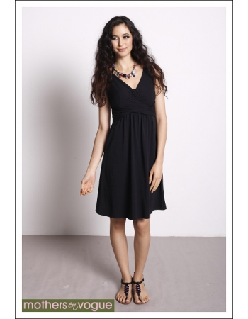 Платье выполнено из мягкой, струящейся ткани черного цвета. Конструкция платья позволяет носить его и во время беременности, и после родов, мягко принимая форму меняющейся фигуры.