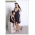 Платье выполнено из мягкой, струящейся ткани темно-синего цвета. Горловина платья украшена вышивкой и прозрачными блестками, доступ к груди закрыт центральными складками ткани. Конструкция платья позволяет носить его и во время беременности, и после родов.