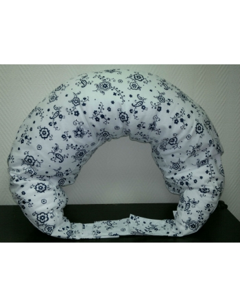 Подушка для кормления белая с темно-синими цветочками