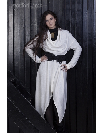 Изящное шерстяное платье с ассиметричным кроем и удлиненными рукавами.