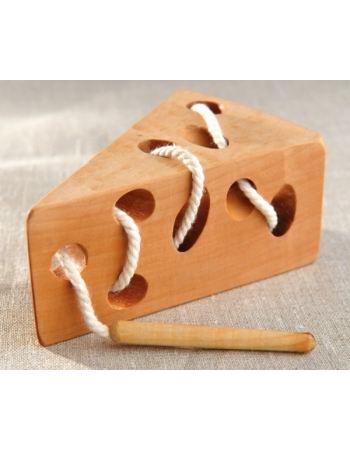 Очень приятная наощупь шнуровка, с большим количеством дырочек для развития мелкой моторики и воображения. Откуда в нашем сыре столько дырочек? Возможно, это сыр сорта "Маасдам", а может быть и "Росийский", над которым славно потрудилась мышка :-). Фантазируейте и шнуруйте вместе со своим малышом.