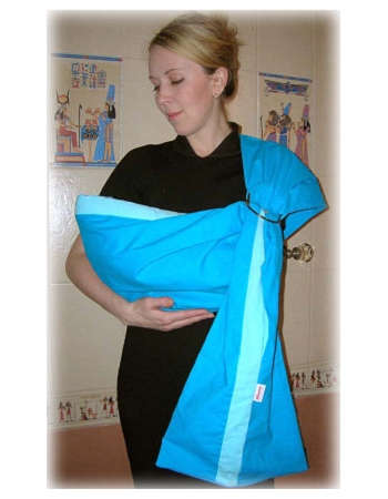 100% хлопок (бязь). Слинг с кольцами ярко-бирюзового цвета с нежно-голубой подкладкой.