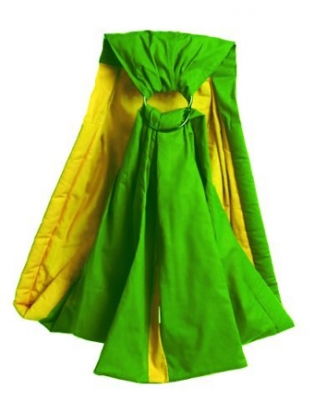 100% хлопок (бязь). Слинг с кольцами ярко-зеленого цвета с желтой подкладкой.