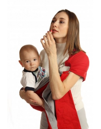 100% хлопок (бязь). Слинг с кольцами насыщенного красного цвета с серой подкладкой.