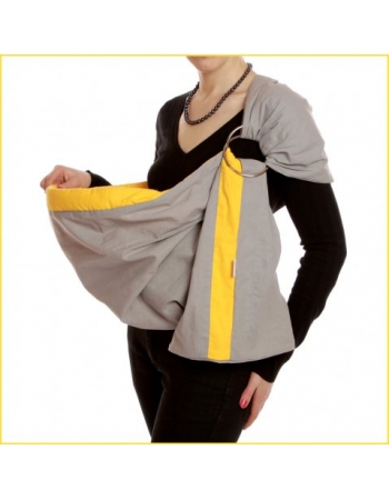 100% хлопок (бязь). Слинг с кольцами цвета розового песка с желтой полосой.
