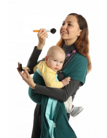 100% хлопок (бязь). Слинг с кольцами глубокого изумрудного цвета с нежно-бирюзовой полосой.
