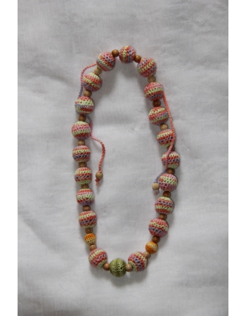Бусы изготовлены из можжевеловых бусин разного размера, обвязанных нитками. Нитки 100% хлопок. Шнурок изготовлен из тех же ниток что использовались для обвязки бусин. Длина бус регулируется. Бусы можно использовать и как украшение для мамы, и как самостоятельную игрушку или прорезыватель для ребенка.