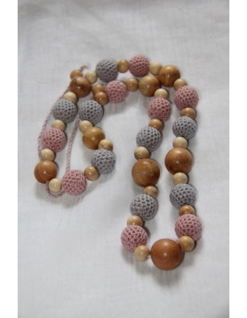 Бусы изготовлены из можжевеловых бусин разного размера, обвязанных нитками. Нитки 100% хлопок. Шнурок изготовлен из тех же ниток что использовались для обвязки бусин. Длина бус регулируется. Бусы можно использовать и как украшение для мамы, и как самостоятельную игрушку или прорезыватель для ребенка.