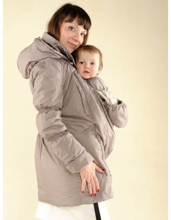 Для Вашего удобства слингокуртка оснащена утепленными капюшонами для мамы и малыша. Приталеный силуэт. Манишка на слингокуртке защищает шею ребенка от ветра.