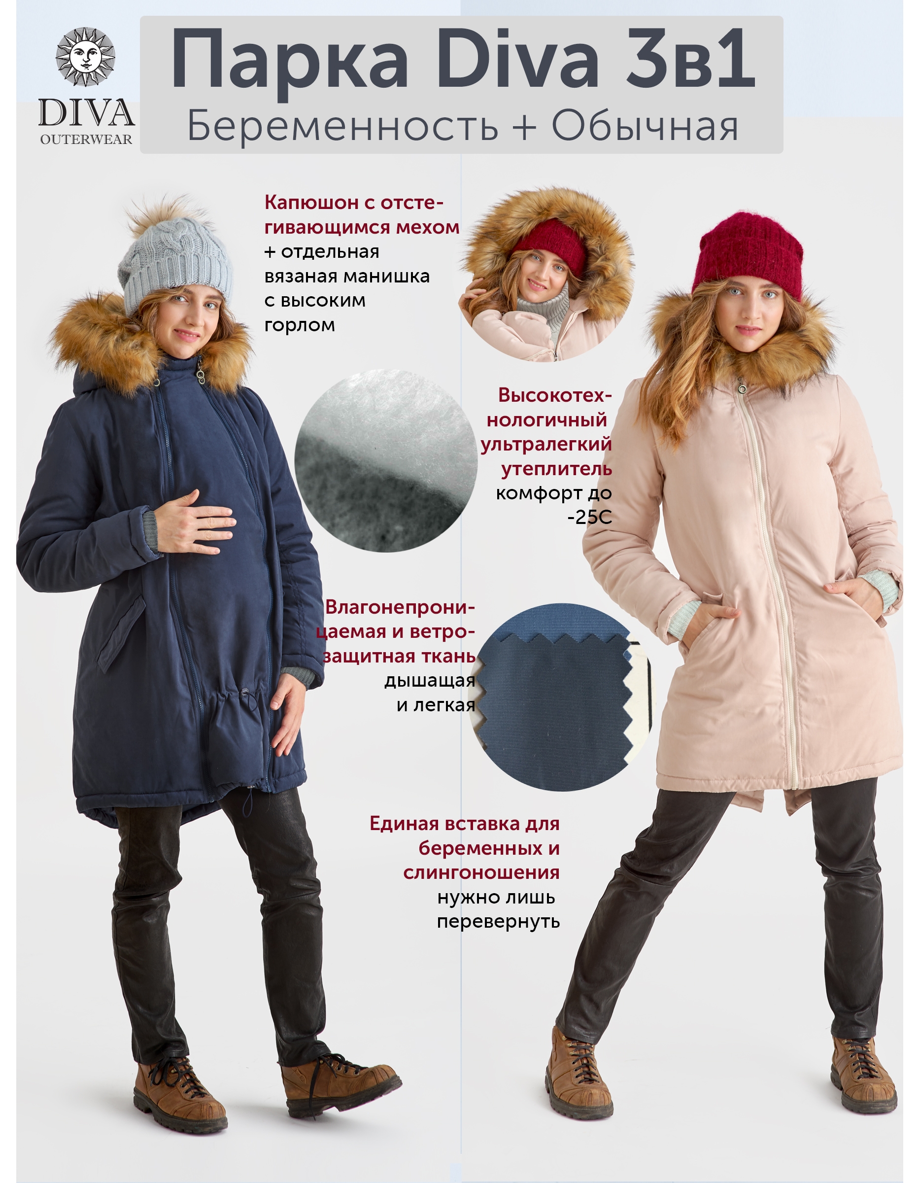 Слингокуртка зимняя - слингопарка 3 в 1: обычная зимняя парка + слингопарка + парка для беременных