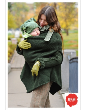 Данная вариация пончо имеет прорези для рук и включает в комплект специальные вязанные рукава, которые можно надевать в особенно холодную погоду. Слингопончо Junah можно носить и если ребенок расположен спереди, и если вы носите его за спиной. Пончо можно также носить во время беременности.