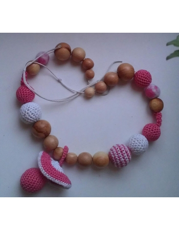 хлопок, шерсть, можжевеловые бусины без лака.