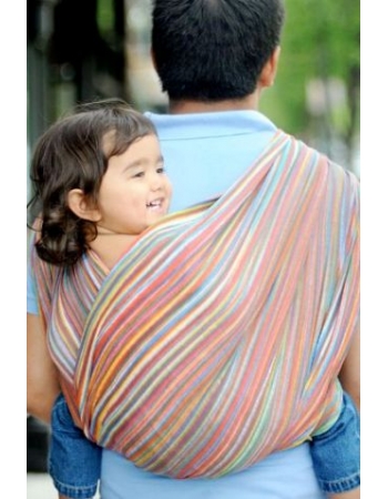 Легкий, яркий, модный, компактный нетянущиеся (тканый) шарф из плотной марлевой ткани (100% хлопок) с вшитым в слинг карманом для удобного хранения и транспортировки. Ткань вручную окрашена, расписана техникой батик и соткана в Бали, Индонезии. Несмотря на свою легковесность, слинг отлично распределяет вес, из-за чего применим не только для младенцев, но и для малышей более старшего возраста, которым все еще необходимы мамино тепло и близость. Не выцветает и не теряет вид после продолжительного использования, а становится только мягче и лучше. Самый популярный вид летнего слинга- шарфа в США. К слингу прилагаются инструкции с иллюстрациями, мешочек для хранения шарфа в тон расцветке и DVD диск с подробным описанием способов ношения.