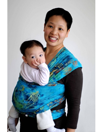 Легкий, яркий, модный, компактный нетянущиеся (тканый) шарф из плотной марлевой ткани (100% хлопок) с вшитым в слинг карманом для удобного хранения и транспортировки. Ткань вручную окрашена, расписана техникой батик и соткана в Бали, Индонезии. Несмотря на свою легковесность, слинг отлично распределяет вес, из-за чего применим не только для младенцев, но и для малышей более старшего возраста, которым все еще необходимы мамино тепло и близость. Не выцветает и не теряет вид после продолжительного использования, а становится только мягче и лучше. Самый популярный вид летнего слинга- шарфа в США. К слингу прилагаются инструкции с иллюстрациями, мешочек для хранения шарфа в тон расцветке и DVD диск с подробным описанием способов ношения.