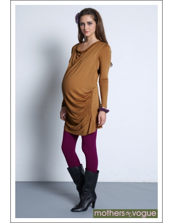 Туника выполнена из экологически чистого, мягчайшего бамбукового волокна с небольшим добавлением спандекса. Она состоит из двух частей, драпировки верхней туники скрывают разрезы для доступа в груди, находищеся во внутреннем топе. Туника комфортна для ношения в беременность, но также и превосходно смотрится после родов: мягкие драпировки скрывают все лишнее в районе живота, а талию можно подчеркнуть с помощью пояса.